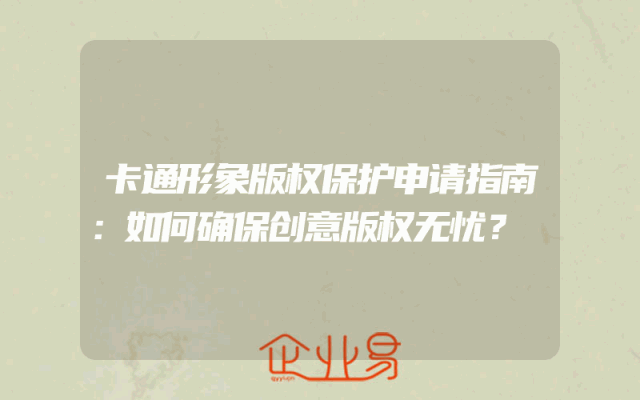 - 卡通形象版权保护申请指南:如何确保创意版权无忧?