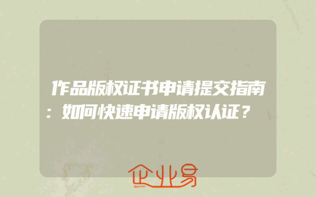 - 作品版权证书申请提交指南:如何快速申请版权认证?