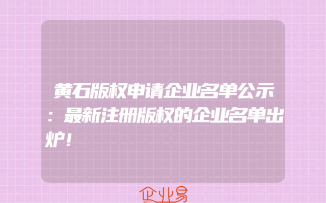 - 黄石版权申请企业名单公示:最新注册版权的企业名单出炉!