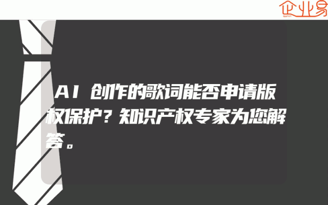 - AI创作的歌词能否申请版权保护?知识产权专家为您解答。