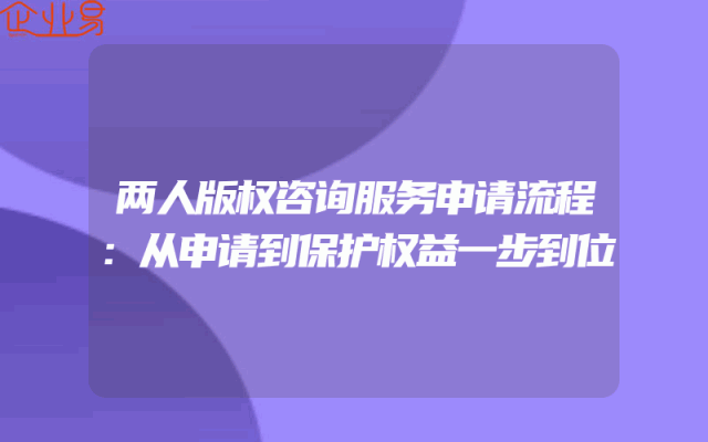 - 两人版权咨询服务申请流程:从申请到保护权益一步到位