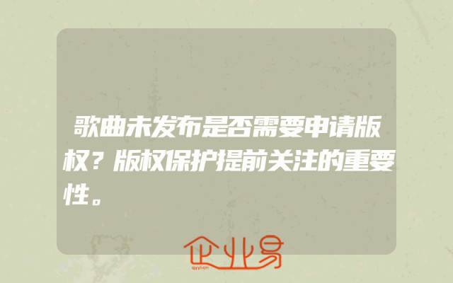 - 歌曲未发布是否需要申请版权?版权保护提前关注的重要性。