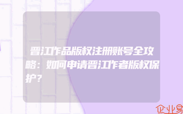 - 晋江作品版权注册账号全攻略:如何申请晋江作者版权保护?