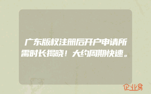 - 广东版权注册后开户申请所需时长揭晓!大约周期快速。