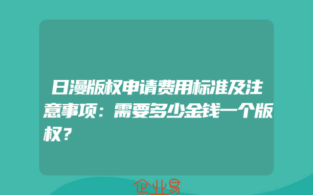 - 日漫版权申请费用标准及注意事项:需要多少金钱一个版权?