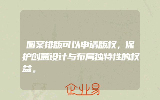 - 图案排版可以申请版权,保护创意设计与布局独特性的权益。