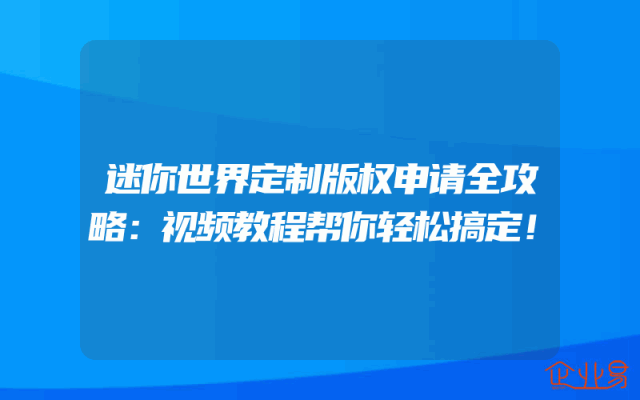 - 迷你世界定制版权申请全攻略:视频教程帮你轻松搞定!