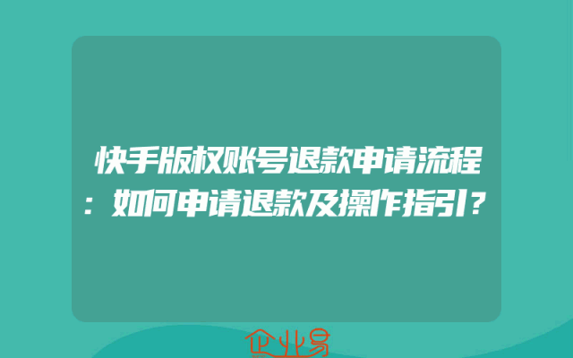 - 快手版权账号退款申请流程:如何申请退款及操作指引?