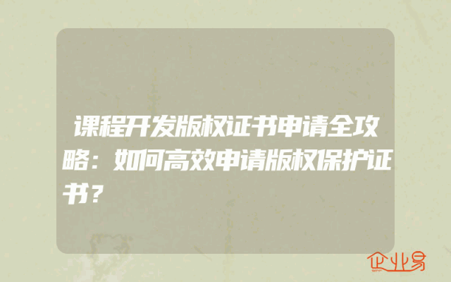 - 课程开发版权证书申请全攻略:如何高效申请版权保护证书?