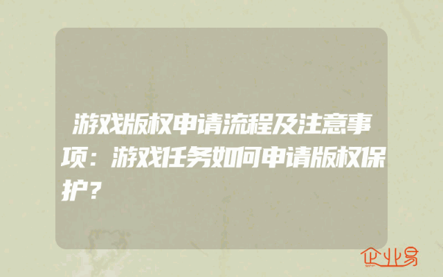 - 游戏版权申请流程及注意事项:游戏任务如何申请版权保护?