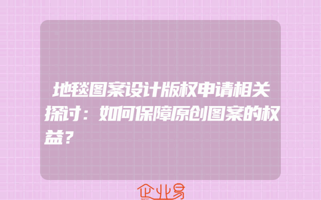 - 地毯图案设计版权申请相关探讨:如何保障原创图案的权益?