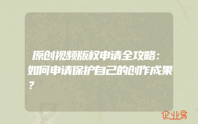 - 原创视频版权申请全攻略:如何申请保护自己的创作成果?