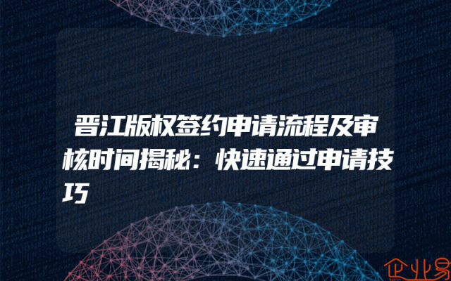- 晋江版权签约申请流程及审核时间揭秘:快速通过申请技巧