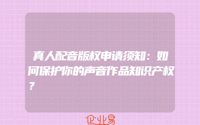 - 真人配音版权申请须知:如何保护你的声音作品知识产权?