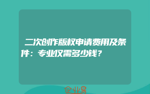 - 二次创作版权申请费用及条件:专业仅需多少钱?