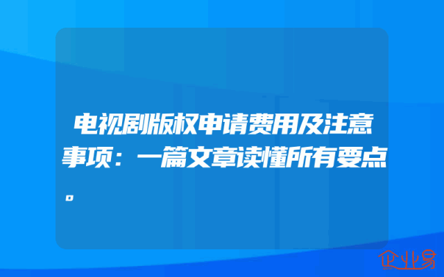 - 电视剧版权申请费用及注意事项:一篇文章读懂所有要点。