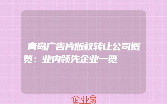 - 青岛广告片版权转让公司概览:业内领先企业一览