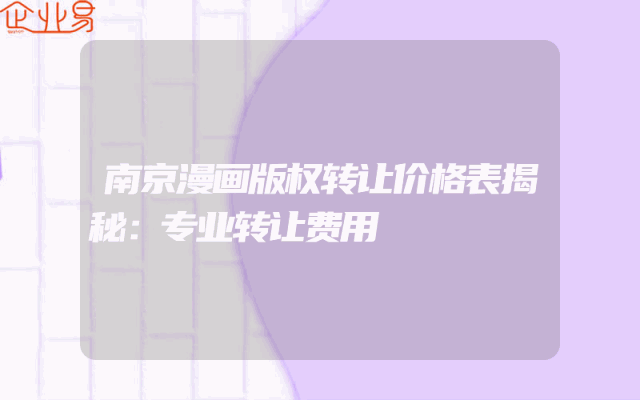 - 南京漫画版权转让价格表揭秘:专业转让费用