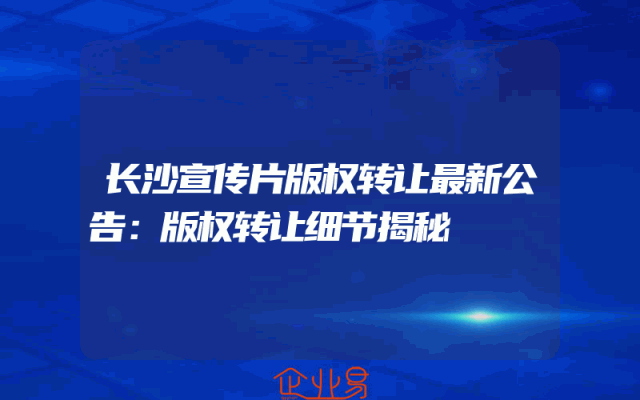 - 长沙宣传片版权转让最新公告:版权转让细节揭秘