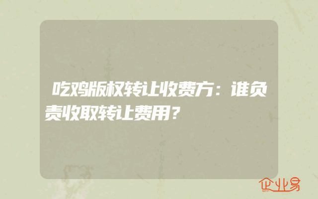- 吃鸡版权转让收费方:谁负责收取转让费用?