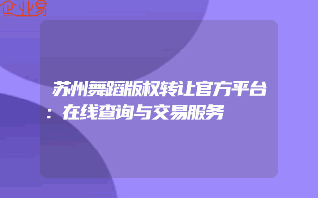 - 苏州舞蹈版权转让官方平台:在线查询与交易服务