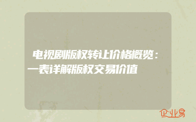 - 电视剧版权转让价格概览:一表详解版权交易价值