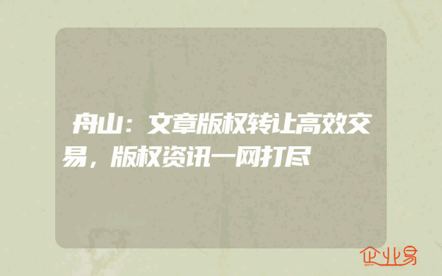 - 舟山:文章版权转让高效交易,版权资讯一网打尽