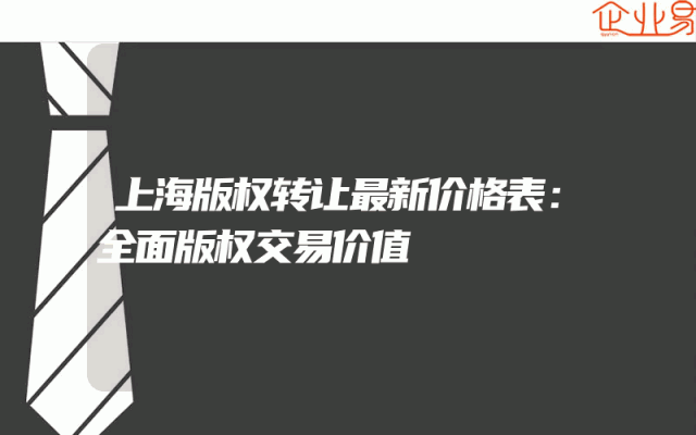 - 上海版权转让最新价格表:全面解析版权交易价值一、引言随着文化产业的蓬勃发展,版权转让成为知识产权保护中的重要环节。上海,作为中国最大的经济中心之一,其版权交易市场日益活跃。版权转让的价格,反映了作品的商业价值与文化价值,受到广大创作者和投资
