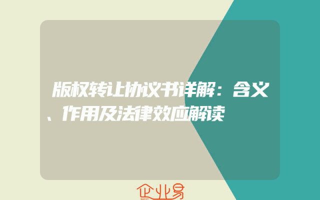 - 版权转让协议书详解:含义、作用及法律效应解读