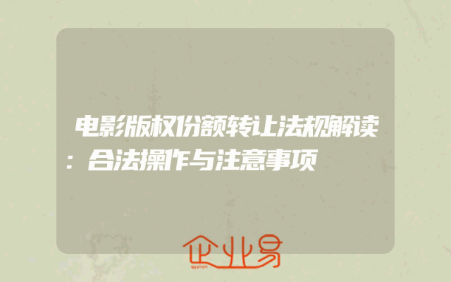 - 电影版权份额转让法规解读:合法操作与注意事项