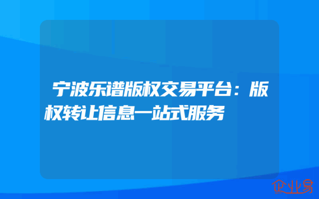 - 宁波乐谱版权交易平台:版权转让信息一站式服务