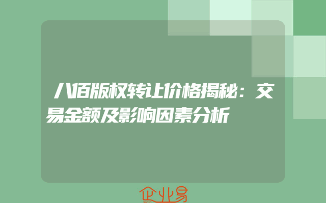 - 八佰版权转让价格揭秘:交易金额及影响因素分析