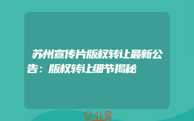 - 苏州宣传片版权转让最新公告:版权转让细节揭秘