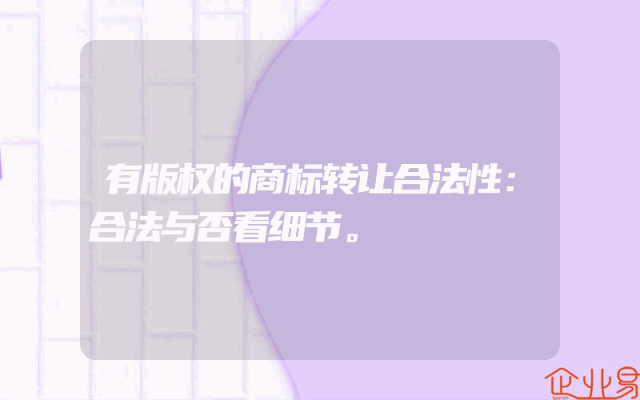 - 版权下的商标转让合法性解析:细节决定成败一、商标转让与版权保护概述在知识产权领域,商标和版权是两个重要的组成部分。商标转让是指商标权人按照法定程序,将其拥有的商标权转移给其他人的法律行为。而版权则主要关乎文学、艺术和科学作品等原创作品的创作