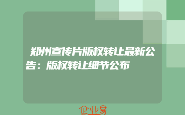 - 郑州宣传片版权转让最新公告:版权转让细节公布