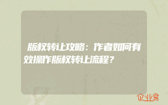 - 版权转让攻略:作者如何有效操作版权转让流程?