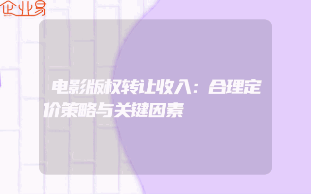 - 电影版权转让收入:合理定价策略与关键因素解析一、电影版权转让收入的重要性在电影产业中,版权转让收入是电影产业链的重要环节之一。随着电影市场的不断扩大和版权意识的逐渐增强,合理有效地管理和利用电影版权,对于电影制片方和投资者来说至关重要。版权
