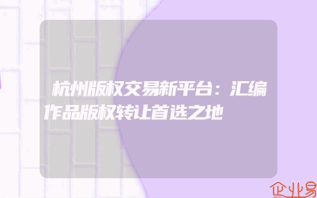 - 杭州版权交易新平台:汇编作品版权转让首选之地