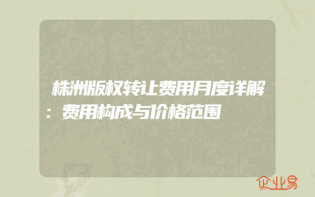 - 株洲版权转让费用月度详解:费用构成与价格范围