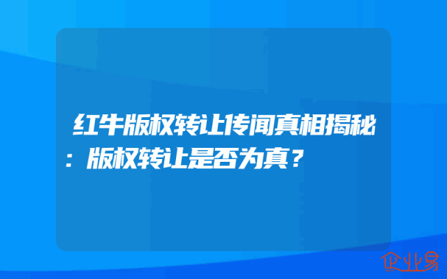 - 红牛版权转让传闻真相揭秘:版权转让是否为真?