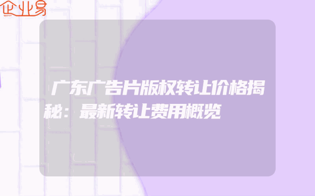 - 广东广告片版权转让价格揭秘:最新转让费用概览