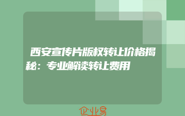 - 西安宣传片版权转让价格揭秘:专业解读转让费用