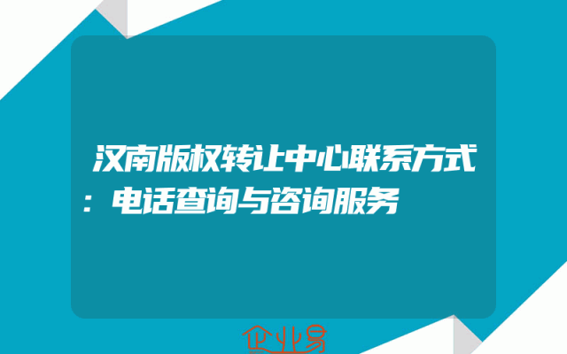 - 汉南版权转让中心联系方式:电话查询与咨询服务