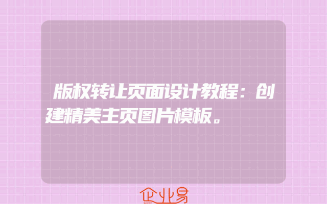 - 版权转让页面设计教程:创建精美主页图片模板随着版权转让事务的不断增加,一个吸引人的版权转让页面显得至关重要。下面将为大家提供一个版权转让页面设计教程,帮助大家创建精美的主页图片模板。本文将从设计理念、页