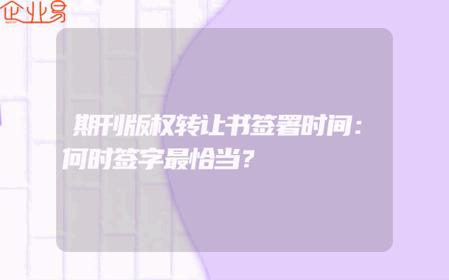 - 期刊版权转让书签署时间:何时签字最恰当?