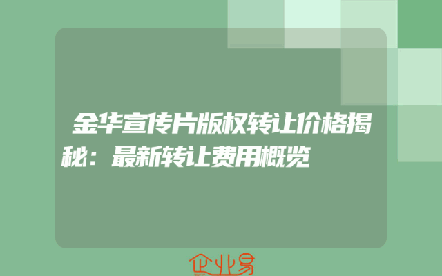 - 金华宣传片版权转让价格揭秘:最新转让费用概览