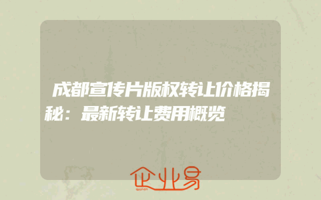 - 成都宣传片版权转让价格揭秘:最新转让费用概览