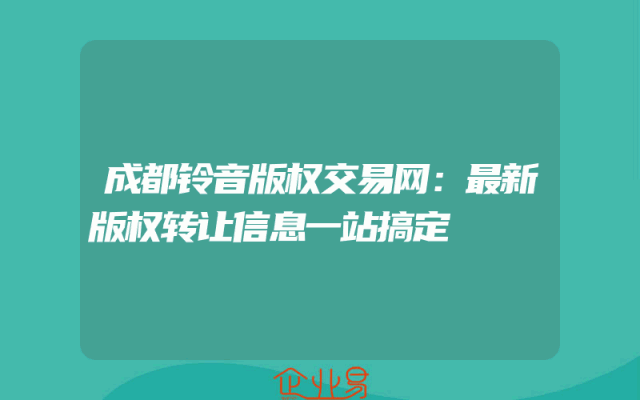 - 成都铃音版权交易网:最新版权转让信息一站搞定