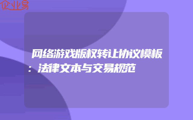 - 网络游戏版权转让协议模板:法律文本与交易规范