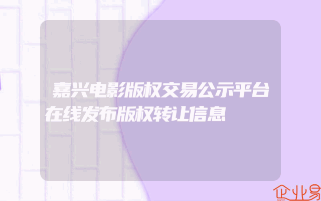 - 嘉兴电影版权交易公示平台在线发布版权转让信息